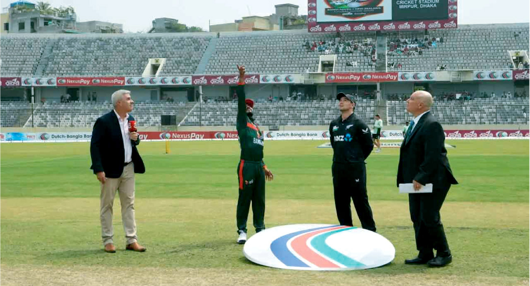 মিরপুর শের-ই বাংলা জাতীয় ক্রিকেট স্টেডিয়ামে তিন ম্যাচের ওয়ানডে সিরিজের প্রথমটিতে শুক্রবার (১৭ এপ্রিল) টস জিতে বাংলাদেশকে আগে ফিল্ডিংয়ে পাঠিয়েছেন কিউই অধিনায়ক টম ল্যাথাম।