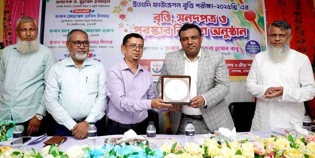 ইত্যাদি ফাউন্ডেশন বৃত্তি পরীক্ষা ২০২৫-এর বৃত্তি, সনদপত্র ও পুরস্কার বিতরণ অনুষ্ঠান শনিবার (১৮ এপ্রিল ২০২৬) বেগমগঞ্জে শহিদ আমান উল্যাহ পাবলিক উচ্চ বিদ্যালয় অডিটোরিয়ামে অনুষ্ঠিত হয়েছে। অনুষ্ঠানে প্রধান অতিথি হিসেবে উপস্থিত ছিলেন নোয়াখালী বিজ্ঞান ও প্রযুক্তি বিশ্ববিদ্যালয়ের (নোবিপ্রবি) উপাচার্য অধ্যাপক ড. মুহাম্মদ ইসমাইল। অনুষ্ঠানে সভাপতিত্ব করেন গণপ্রজাতন্ত্রী বাংলাদেশ সরকারের ডাক, টেলিযোগাযোগ ও তথ্যপ্রযুক্তি মন্ত্রণালয়ের তথ্য ও যোগাযোগ প্রযুক্তি বিভাগের উপ-সচিব জনাব আবু নাছের টিপু।